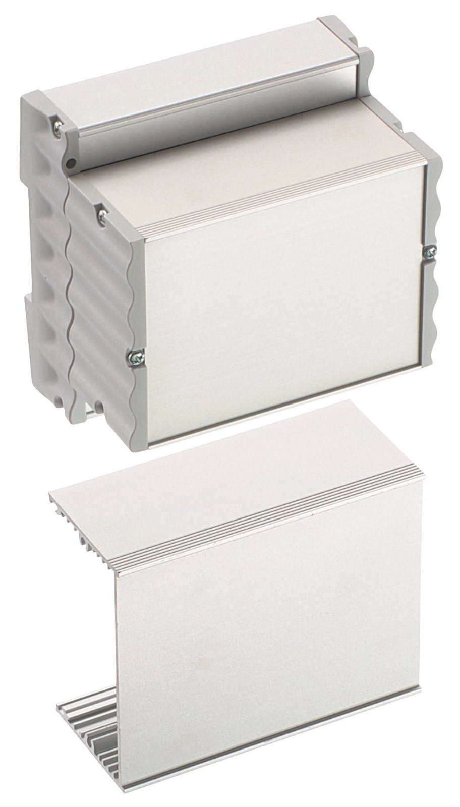 Modular, semi-open, tall (75 mm) aluminum profiles attached to the base profile (ARP 75..., ARP 105... or ARPG 75...) using plastic or aluminum connectors (AR ... or ARM ...). Assembly of all appropriate parts creates a housing as shown in the illustrative image.