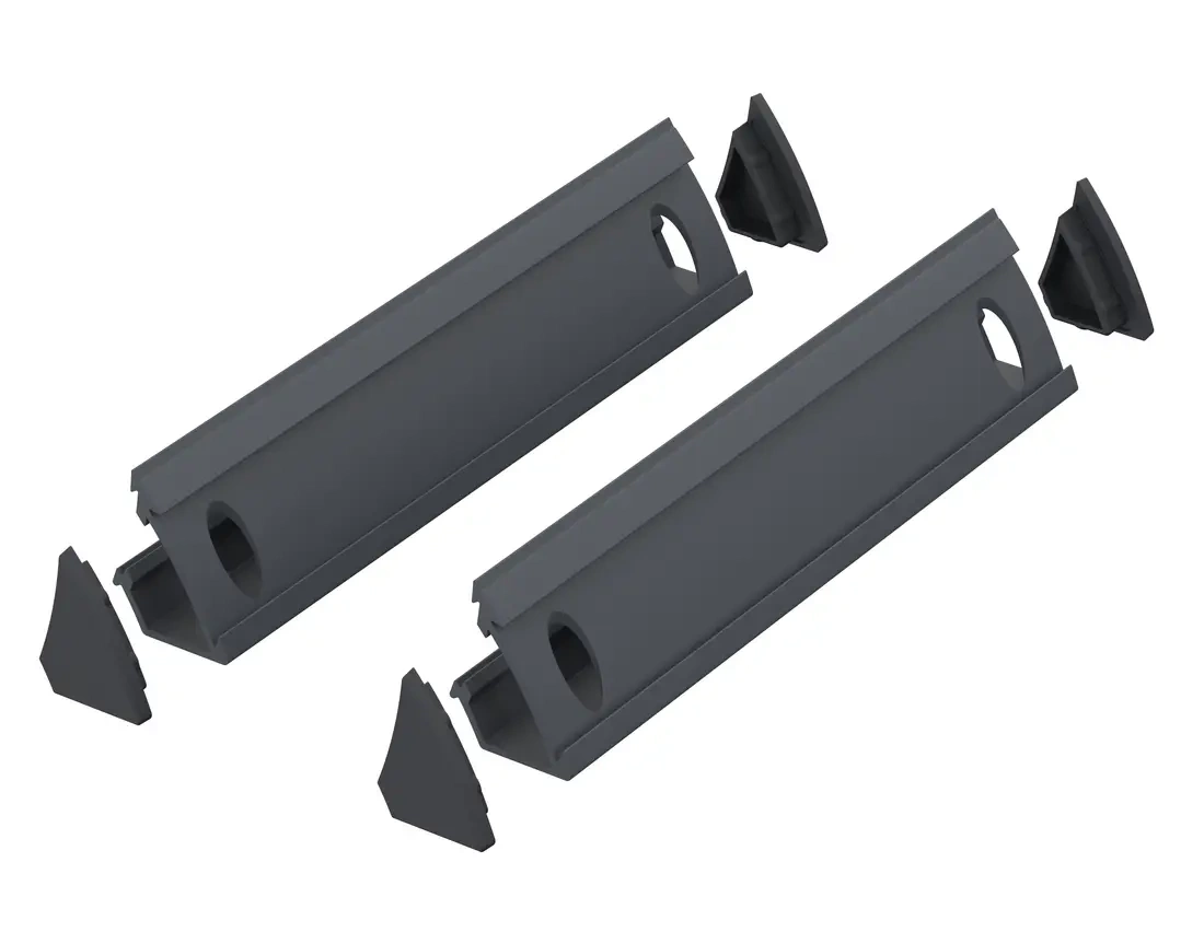 Wall brackets for AS 1540/1850, for profile length 150 mm in RAL 7024 color. Scope of delivery includes 2 wall fittings and 4 covers