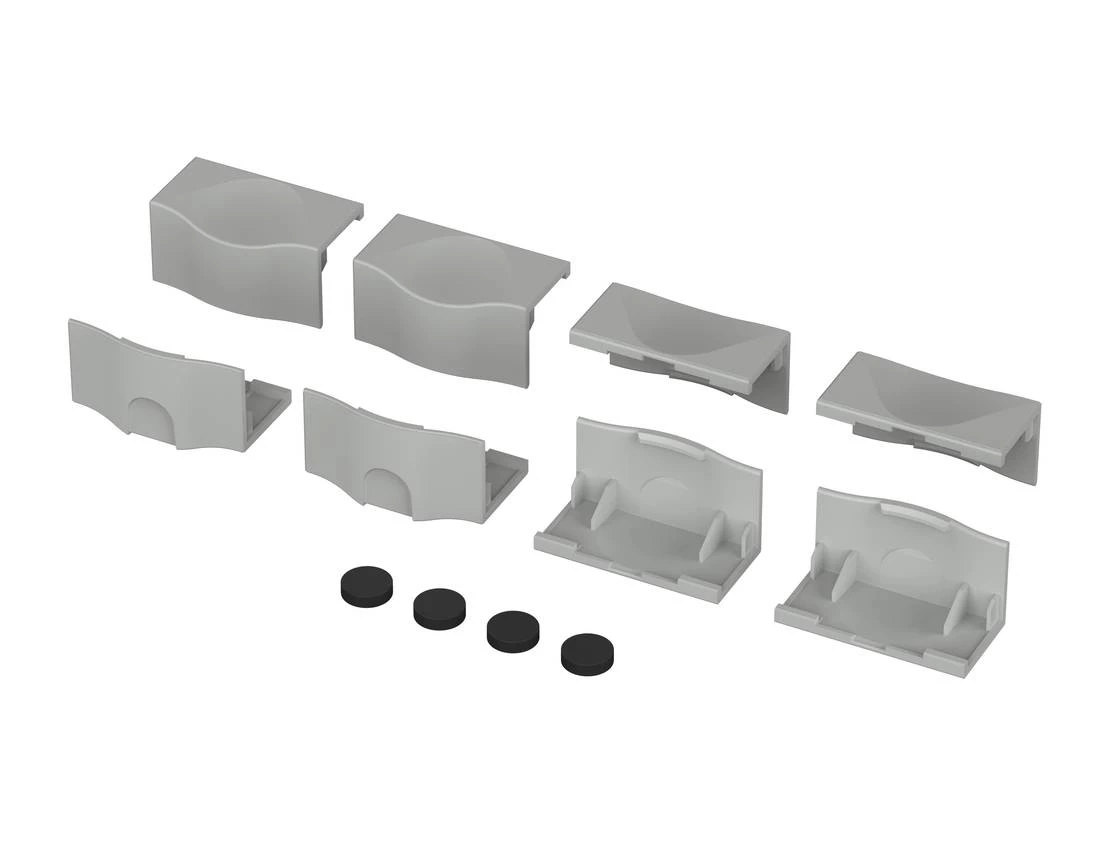 Cap set for desktop enclosure in grey color similar to RAL 7035. Scope of delivery includes 4 upper caps, 4 lower caps and 4 rubber feet