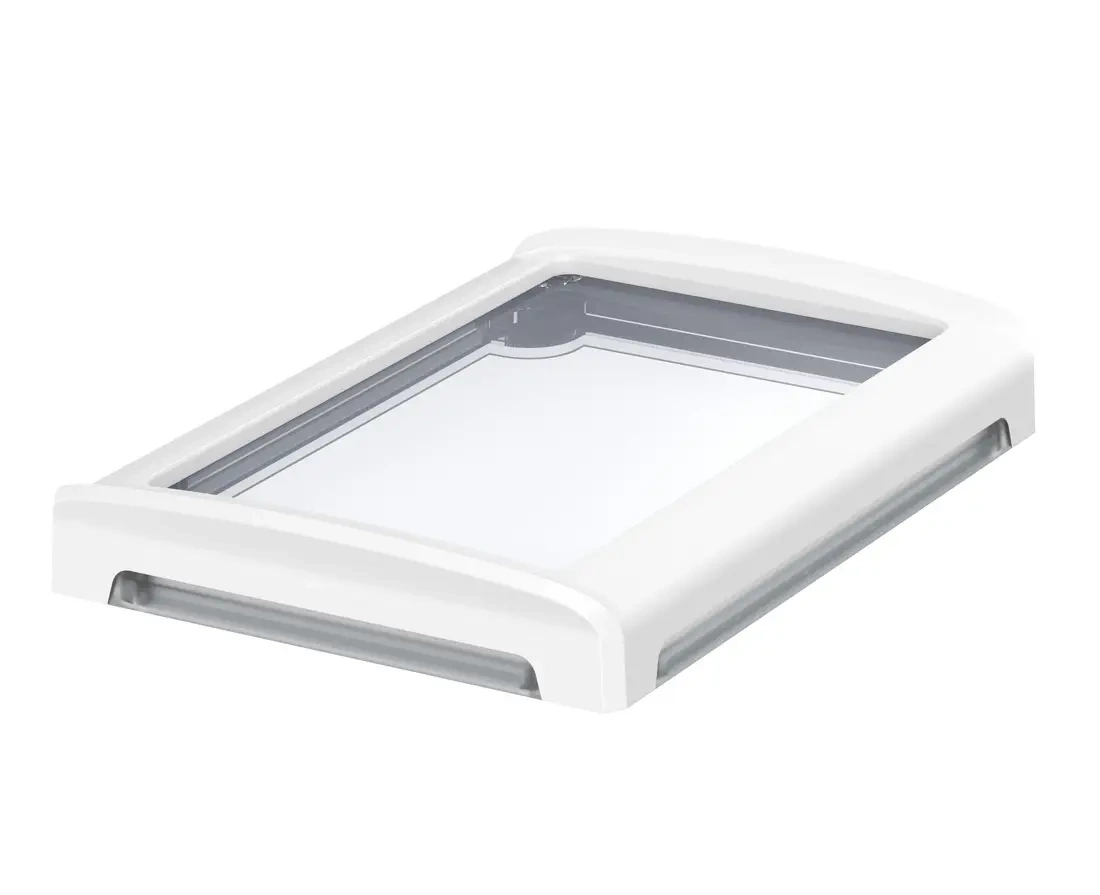 BoVersa transparent plastic lid with open white design cover with silicone seal for BOV 120903.- Order of assembly of the BoVersa enclosure components