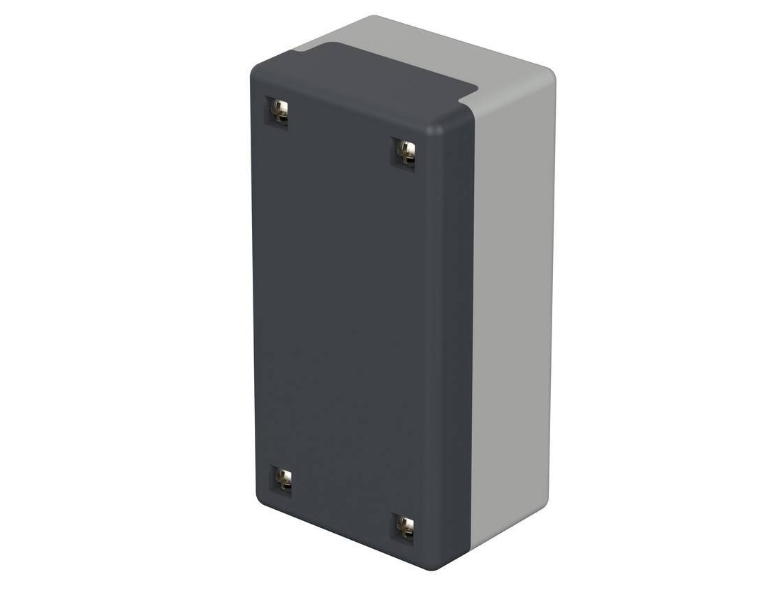 Screwed enclosure with a flat cover in light gray RAL 7035 and a base in graphite gray RAL 7024. Screws are invisible from the front of the enclosure.