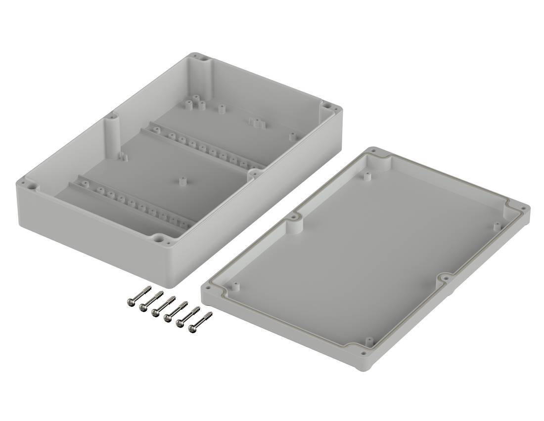A classic industrial enclosure. The possibility of mounting PCBs in the base or the cover of the enclosure. Plastic screw covers EM-SA, numerous mounting accessories available separately. The high quality of the material used is greatly appreciated during the enclosure milling process.