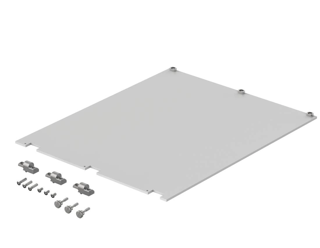 The set includes 1 front panel, 1 set of hinges, 3 metal screw holders, 3 M2,5x12,3, uszczelka tekstylna EMC knurled screws, EMC textile seal and mounting materials.