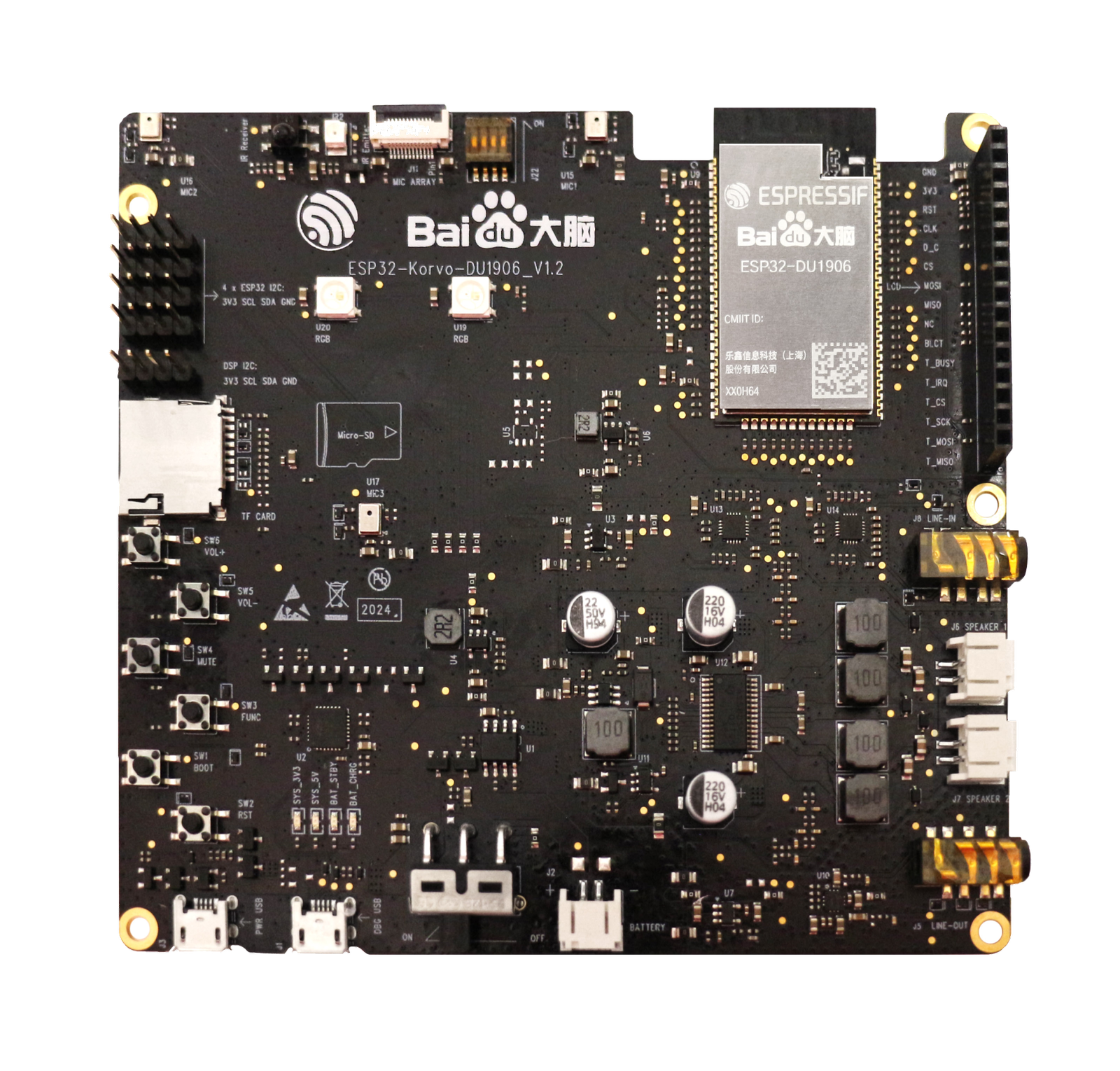 A developement board by Espressif Systems, with an ESP32-DU1906 module embedded, supporting WiFi 802.11 b/g/n, 2.4 GHz standards as well as Bluetooth 4.2, equipped with a PCB antenna.
