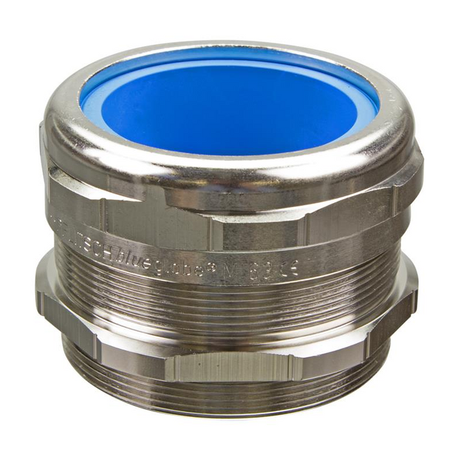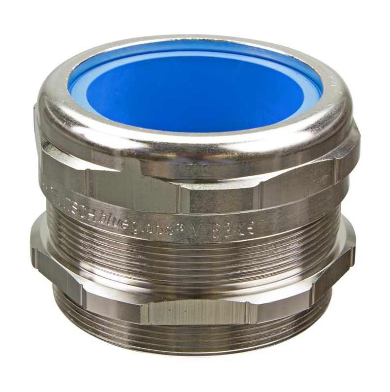 Bg 863ms is a brass cable gland from the Pflitsch blueglobe series. The gland provides gentle relief over a large area, good resistance to vibrations and a wide range of seals. The component is easy to identify. It has an M63 thread, a sealing range of 41-54 mm, a sealing insert made of TPE material and a ingress protection rating of IP68 (up to 15 bar), IP69. Operaring temperature range of the cable gland reaches -40 ... +130 degrees Celsius.