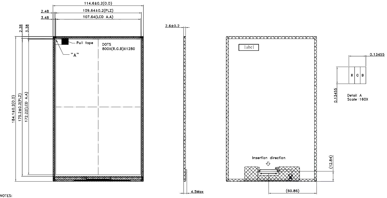 PH800128T005-ZHA, 8” TFT with full viewing angle display. Brightness: 900. 800 x 1280 resolution with WXGA standard, 16:10 aspect ratio, 4 lans MIPI interface.