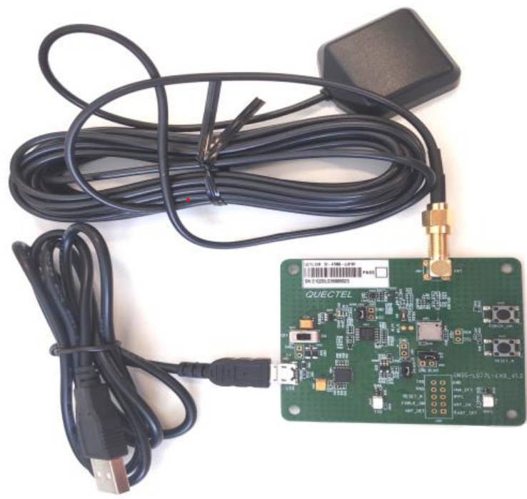 GNSS evaluation kit with LG77L module and base board, created by Quectel.