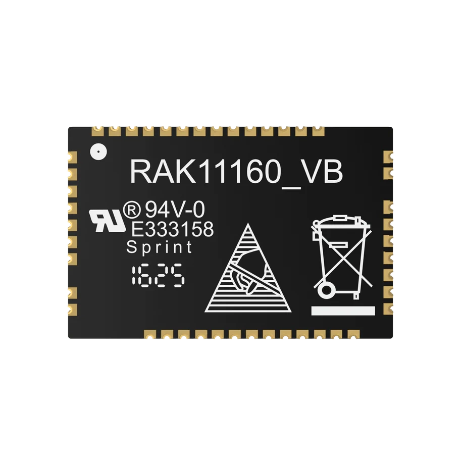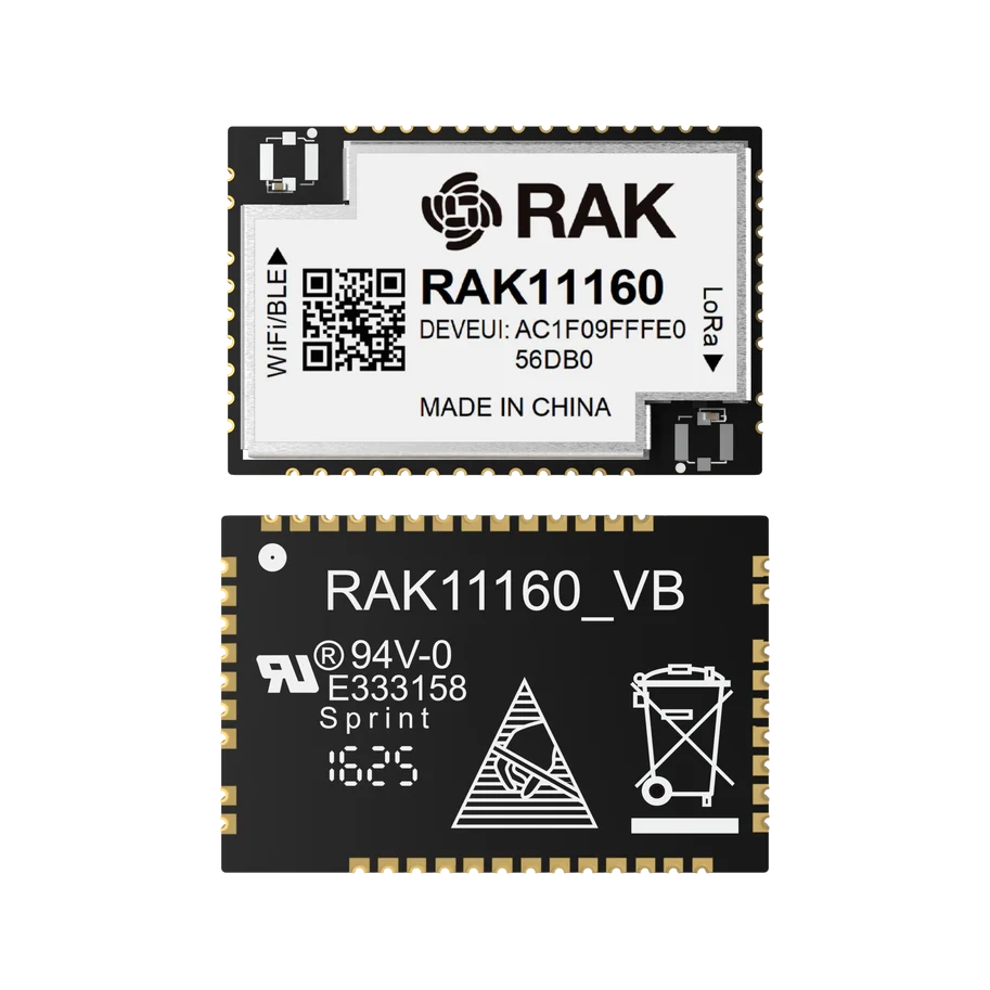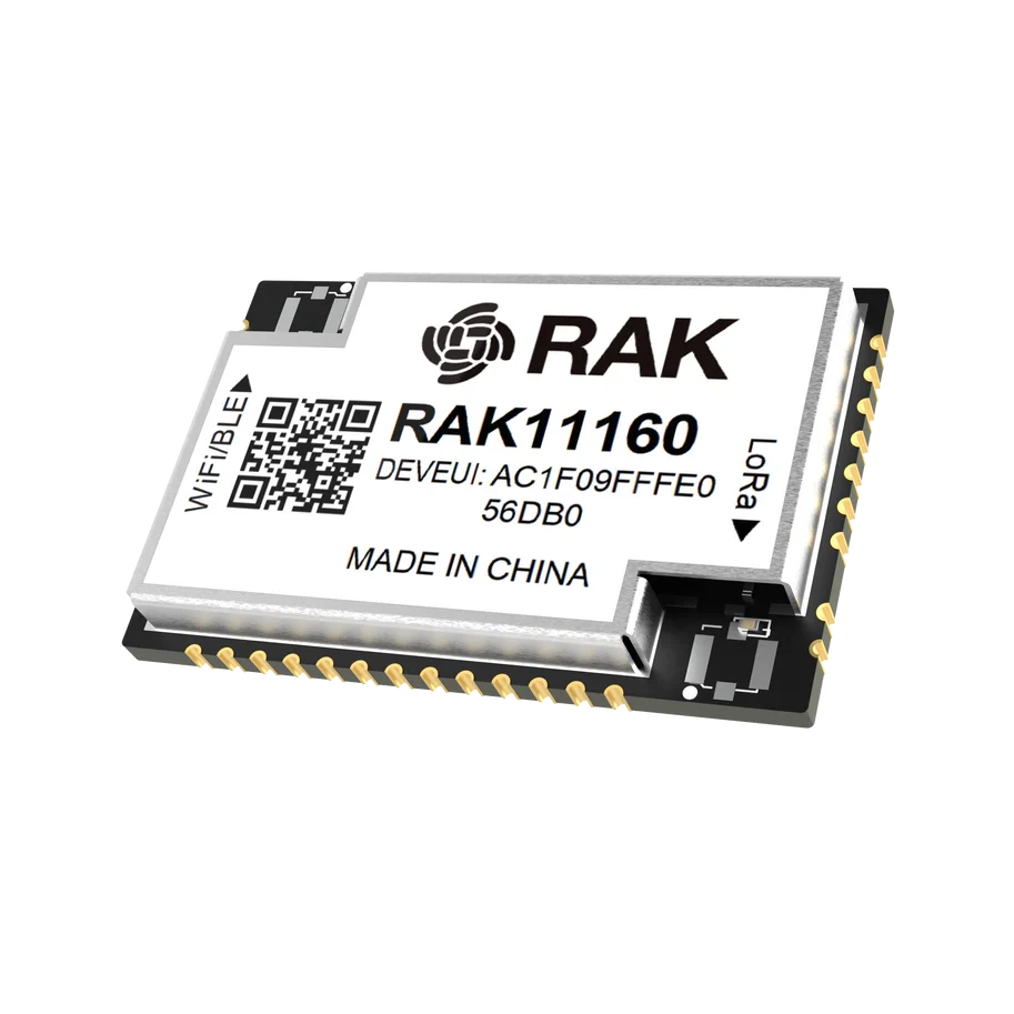 RAK11160 is a dual-core, low-power module for LoRaWAN that combines the STM32WLE5 LoRa controller with an ESP32-C2 chip for WiFi and BLE connectivity. This product is designed for IoT applications requiring long-range wireless communication and occasional high-bandwidth tasks like MQTT forwarding or OTA updates. Antenna connector type - RF.