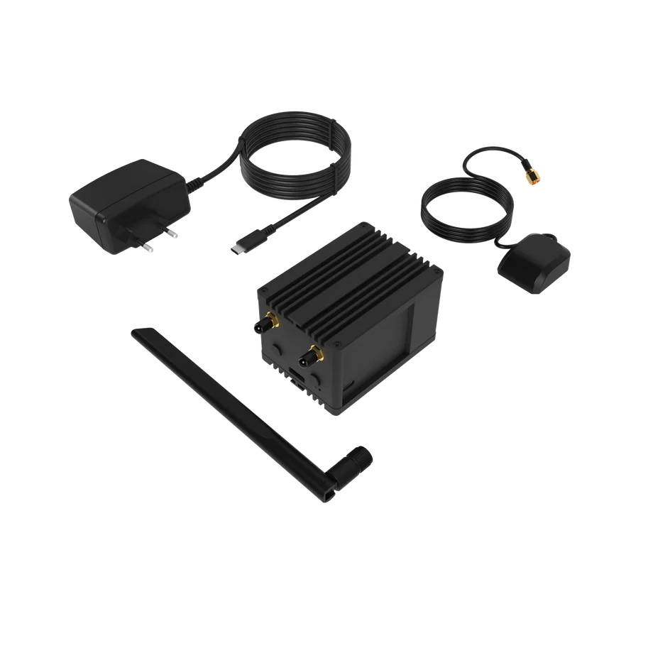 RAK7394P LPWAN Developer Gateway from Rak Wireless. The device includes a built-in Raspberry Pi 4 computer, RAK2287 concentrator, RAK2287 Pi HAT, RAK9003 Pi HAT and RAKR314 carrier board. The enclosure is made entirely of aluminum.