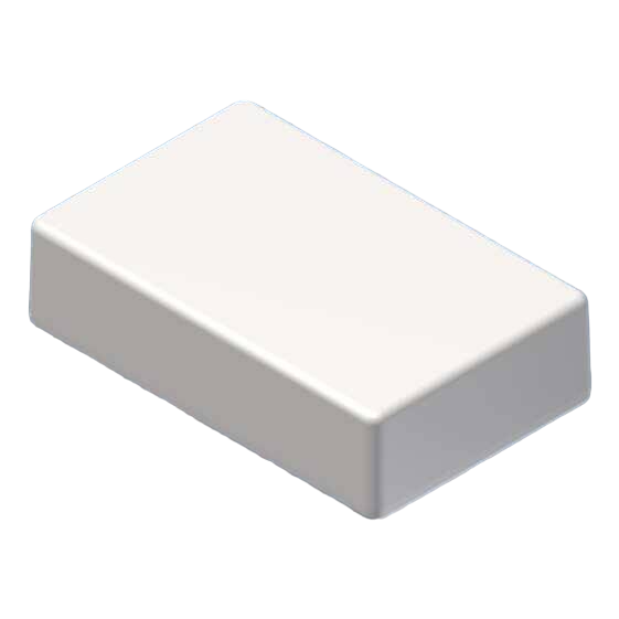 ABS enclosure with rounded corners. Base and cover have integral PCB mounting studs.Matt surface finish. Closing by one screw.