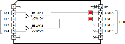Tibbit Block #03-1 has two mechanical low-power relays with independent normally opened terminals. It's form factor is M1S, 7x14 squares (2.54 x 2.54 mm each).