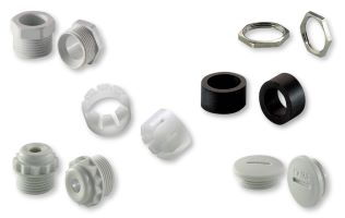 Uzupełniające komponenty i elementy pomocnicze – uszczelki, nakrętki zamykające, zaślepki, tulejki, wkładki redukcyjne i inne akcesoria, które umożliwiają elastyczne dopasowanie systemu wprowadzenia przewodów do konkretnej instalacji.