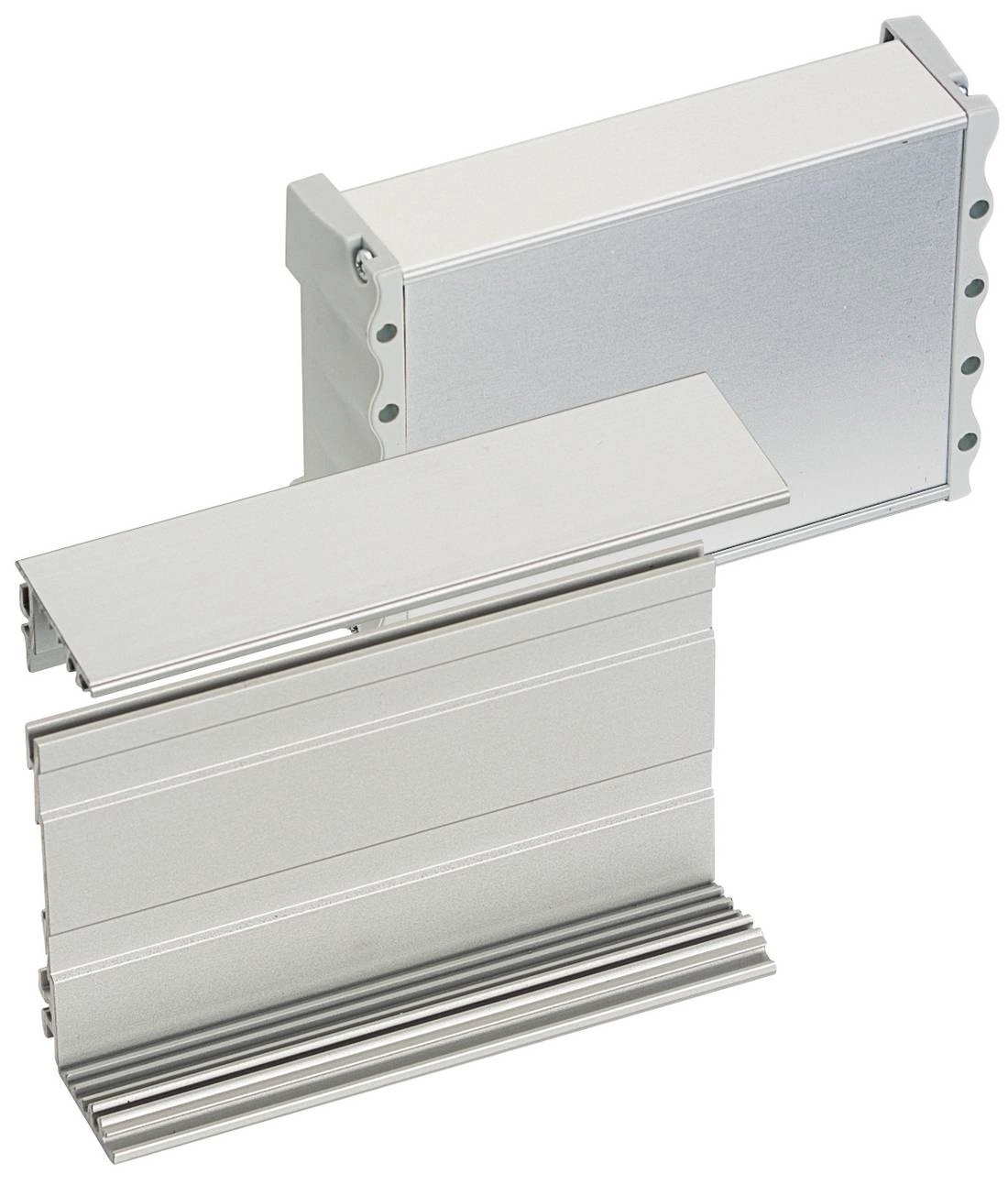 Profil dzielony podstawy obudowy Alurail do montażu na szynie DIN. Wysokość profilu 75 mm, wykonany z anodyzowanego aluminium. Inne długości niż katalogowe są dostępne na zapytanie.