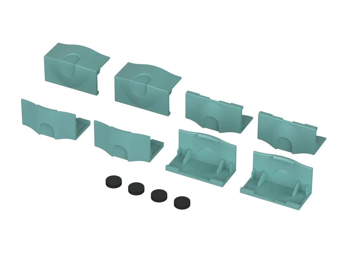 Narożnik łączeniowo-dekoracyjny pomiędzy częściami obudowy w kolorze zielonym, zbliżonym do RAL 6027. Zamówienie zawiera 8 jednakowych narożników i 4 gumowe nóżki.
