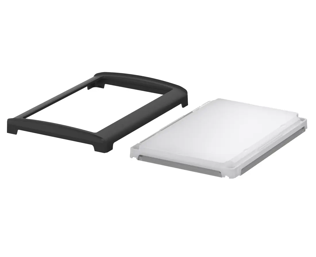 Półprzezroczysta plastikowa pokrywa BoVersa typu translucent z otwartym czarnym design coverem z uszczelką silikonową do obudów BOV 171204.- Kolejność montażu części składowych obudowy BoVersa