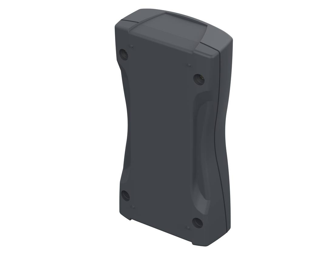 Ergonomiczna obudowa ręczna o wymiarach 140,3 x 72,9 x 31,3 mm w kolorze szarym zbliżonym do RAL 7024 z wgłębieniem powierzchni pod montaż wyświetlacza i/lub klawiatury membranowej.