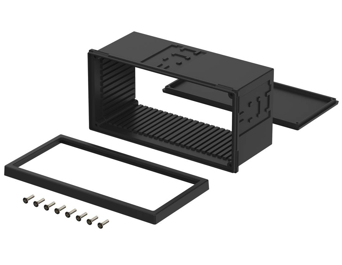 Obudowa tablicowa wykonana z tworzywa sztucznego wzmocnionego włóknem szklanym. Montaż płytek PCB w pionie lub poziomie obudowy. Liczne dodatkowe akcesoria zamawiane osobno jak zatrzaski montażowe ( NGS…NK, NGS…NF lub NGS…NH), płyty czołowe aluminiowe ( NGS…FAE) lub plastikowe ( NGS…FKT), uszczelki wewnętrzne ( NGS…DI) lub zewnętrzne ( NGS…DP), przezroczyste pokrywy ( NGS…GHN) lub pełne (NGS…F), ramki w opcjach wciskanych „snap-on” ( NGS-SA). W zestawie dostarczamy obudowę, standardową ramkę przednia, pokrywę tylną wraz z śrubkami mocującymi.