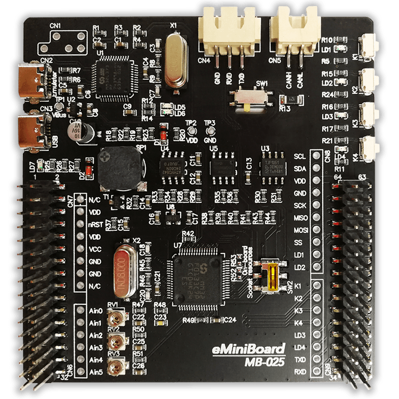 eMini-F0130 to zestaw rozwojowy firmy MindMotion, złożony z płyty eMiniBoard i 32-bitowego, wysoko wydajnego mikrokontrolera MM32F0133C7P z wbudowaną szybką pamięcią, szeroką gamą rozszerzonych portów I/O i urządzeń peryferyjnych.