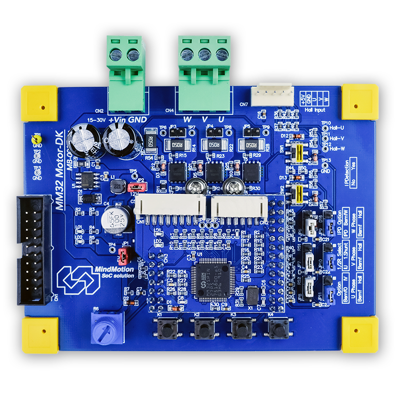 Motor-DK-SPIN07 to zestaw rozwojowy firmy MindMotion, złożony z płyty Motor-DK i 32-bitowego, wysoko wydajnego mikrokontrolera MM32SPIN07PF z wbudowaną szybką pamięcią, szeroką gamą rozszerzonych portów I/O i urządzeń peryferyjnych.