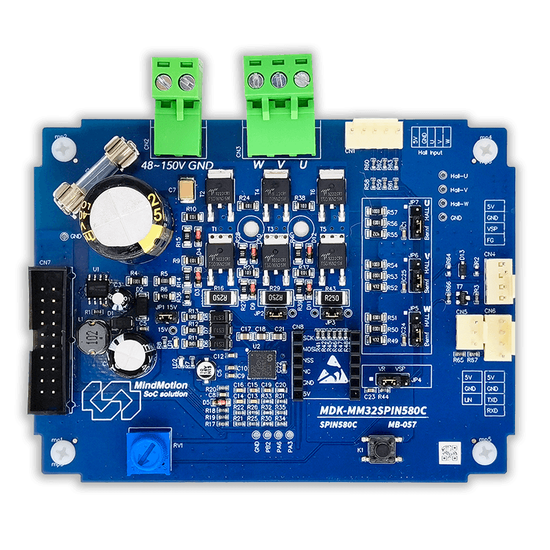 Motor-DK-SPIN580C to zestaw rozwojowy firmy MindMotion, złożony z płyty Motor-DK i 32-bitowego, wysoko wydajnego mikrokontrolera MM32SPIN580C z wbudowaną szybką pamięcią, szeroką gamą rozszerzonych portów I/O i urządzeń peryferyjnych.