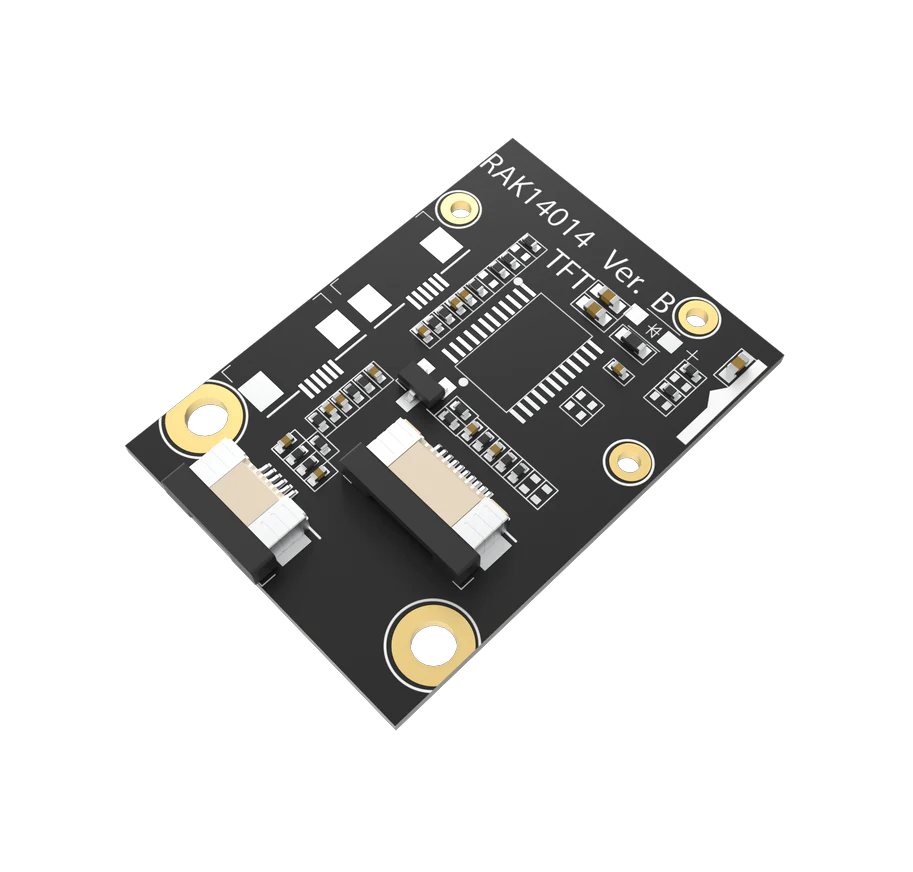 RAK14014 to moduł wyświetlacza WisBlock oparty na IPS TFT LCD. Wyświetlacz dotykowy o aktywnym obszarze 2,4 cala i rozdzielczości 240 x 320 pikseli może wyświetlać kolorowe grafiki. Jest on połączony z WisBlock Core poprzez SPI.
