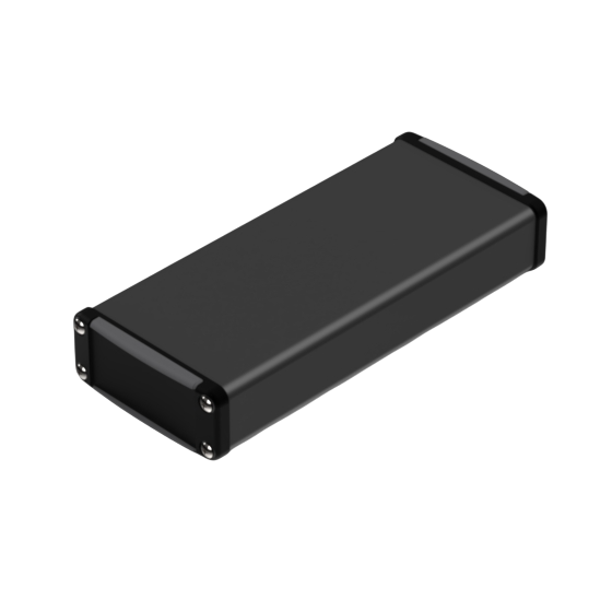 Profil w kolorze czarnym wg RAL 9004 wykonany ze stopu aluminium. Obudowa posiada dwa przednie panele z wlanymi uszczelkami, które zapewniają klasę szczelności IP65 oraz wewnętrzne miejsce na płytki drukowane PCB. Zamykana za pomocą 8 śrubek dostarczanych w zestawie.
