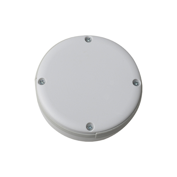 Okrągła góra w kolorze białym wg RAL 9002, zaś podstawa w kolorze jasnoszarym wg RAL 9018. Wewnętrzne uszczelki zapewniają ochronę przed pyłem i wodą na poziomie szczelności IP65. W środku obudowy znajduje się miejsce na baterię guzikową.