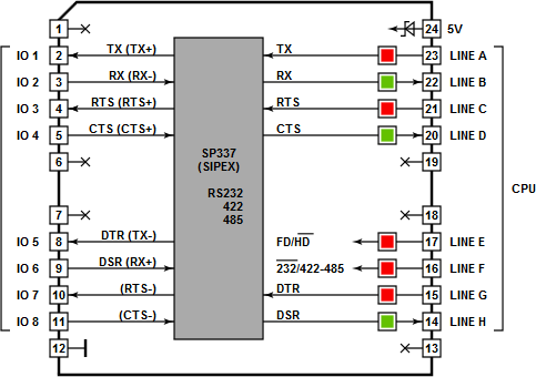 Tibbit Block #02 to port szeregowy, który można elektronicznie zaprogramować do pracy w trybie RS232, RS422 lub RS485. Jego forma to M2S, o wymiarze 14x14 kwadratów (2,54 x 2,54 mm każdy).